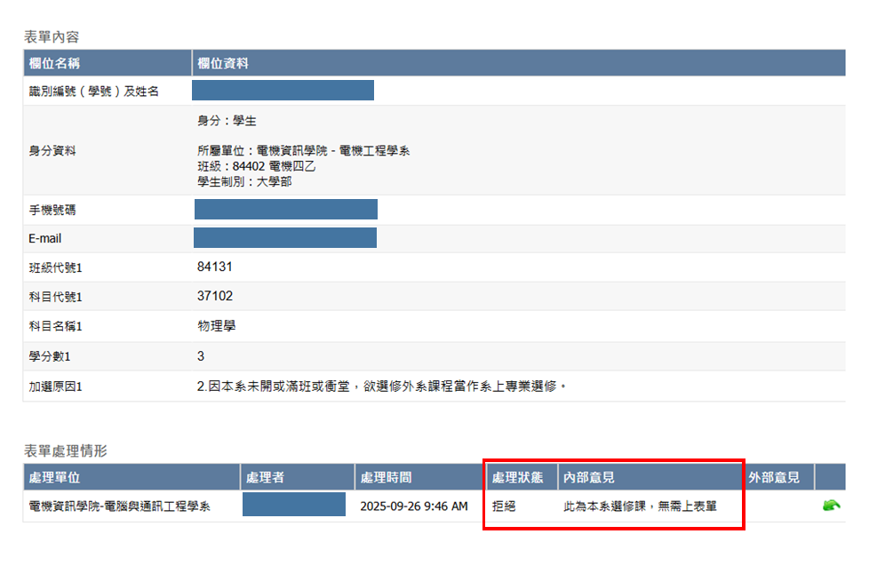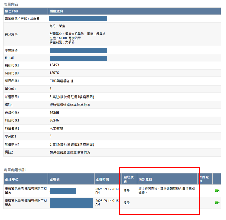 是否通過的結果都可以在表單系統查看,以下說明查看方式